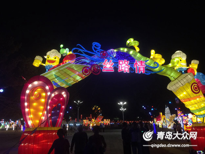今年的賞燈節以“盛世中國夢,多彩絲路情”為主題,以張騫出使西域、鄭和下西洋等歷史事件為主線,用彩燈的藝術形式展現“絲綢之路經濟帶”、“二十一世紀海上絲綢之路”沿線各國的建筑藝術、商業藝術、人文藝術。 入口處的“好客山東”燈組結合景區原有主題綠雕,以曲阜杏壇為背景,傳達出“有朋自遠方來,不亦樂乎”的美好寓意,歡迎八方游客的到來。地池水面上極具中國風的超大型燈景“盛世中華”,以巨大的鏤空燈籠為主體,配以鮮艷的花朵和四條鯉魚,造型精致,具有極強的視覺沖擊力,讓人流連忘返。“歡樂影像”燈組利用投影儀和地面彩燈,讓游客可以參與互動,吸引了不少觀賞者,尤其受孩子們的歡迎。市民游客紛紛表示,今年的燈組新穎、好看又富有意義,特別值得一看。